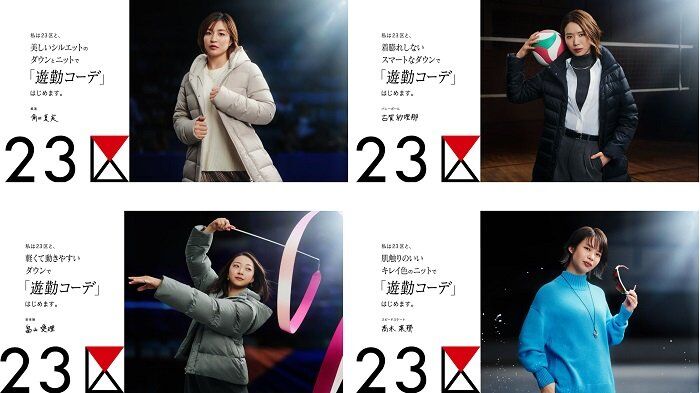 柔道家・角田夏実、元バレーボール女子日本代表・古賀紗理那、元新体操日本代表・畠山愛理、元スピードスケート選手・高木菜那(※高=はしごだか)が、ファッションブランド『23区』のモデルとしてデビューした。