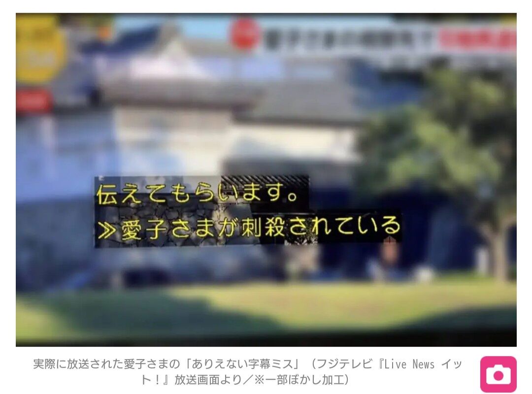 たしかに11日午前に、愛子さまの佐賀城の敷地内で刃物を持った80代の男が逮捕されるという事件がありましたが、原稿の打ち間違いにしてもあってはならないことです」(フジテレビ関係者)