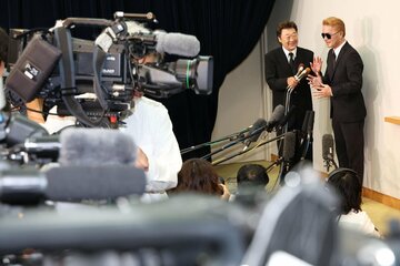なぜこの風貌で来たのか問われると「本当にいつもこのスタイルでいるので…」と答えていた。男は「申し訳ない」と言い残し、会見場を後にした。