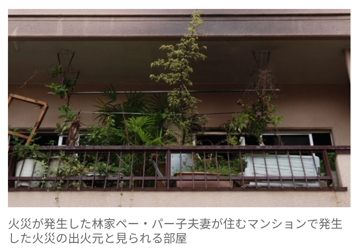 パー子は煙を吸って病院へ搬送されたが、命に別状はない。夫妻の部屋は5階建てマンションの3階。ポンプ車など29台が出動して消火作業にあたった。