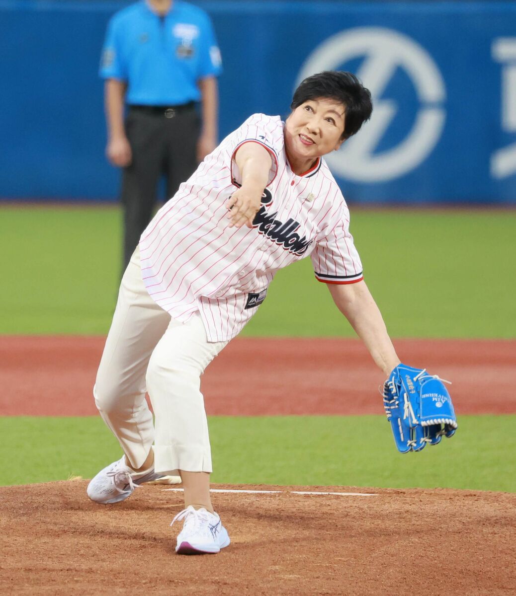 小池氏は6日夜、明治神宮野球場(新宿区)で行われたプロ野球、ヤクルト-阪神戦前の始球式に登場した。「来年はお隣の国立競技場で世界陸上が、そしてデフリンピックが東京体育館で開かれることになっている。これからもスポーツで盛り上げていきましょう」などと呼びかけた後、マウンドから投球。ツーバウンドでキャッチャーに届き、手を振りながら退場した。