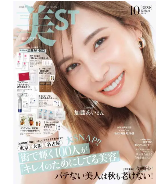 加藤は「美STモデルを務めさせていただくようになり、1年が経ちました。美容を楽しむことで、心も軽やかに前向きになれた気がします。創刊16周年という節目の号で、表紙を飾らせていただけたことを大変嬉しく思います」と喜びをコメント。