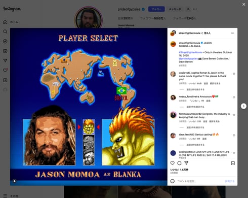 (出典 ハリウッド実写版『ストリートファイター』キャスト判明 ─ リュウ、ケン、ブランカ、豪鬼役か | THE RIVER)