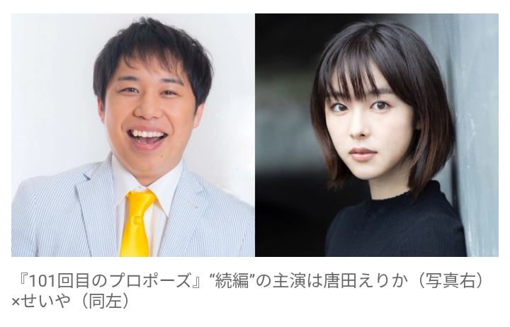 【フジテレビ】『101回目のプロポーズ』続編の制作が決定! 主演は唐田えりか&霜降り・せいや 武田鉄矢も出演 大ヒットから34年
