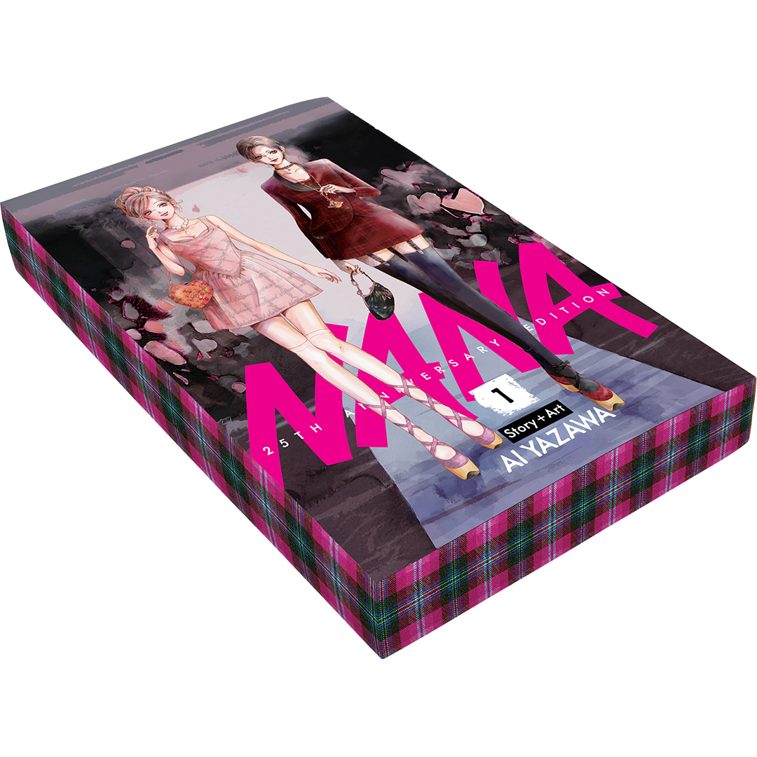 カバーの美しさはまさに“天にも昇る組み合わせ”であるだけでなく、この特別版では、ナナ・コマツとナナ・オオサキの衣装と同じチェック柄がスプレー加工されたページの縁があしらわれています。これは25周年記念の通常版にも共通するデザインです。
