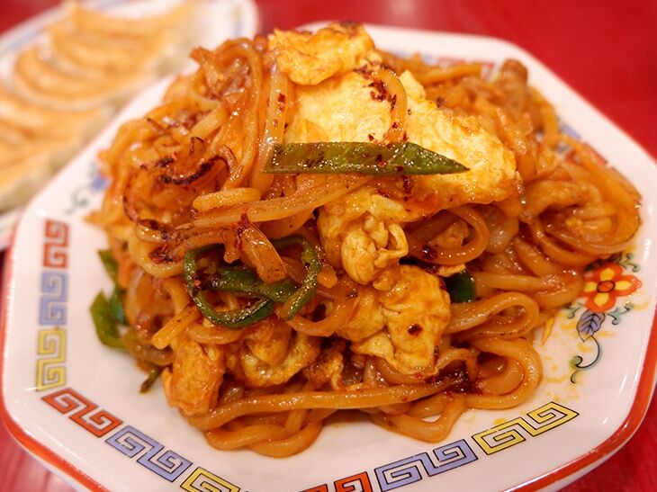 入店した松村さんはメニューの中から、「ナポリタン焼きそば」に注目。「え~なにそれ、知らないですね」と驚くと、にんにく肉肉肉餃子、えびせん、ふわとろ天津チャーハンなどと一緒に注文しました。