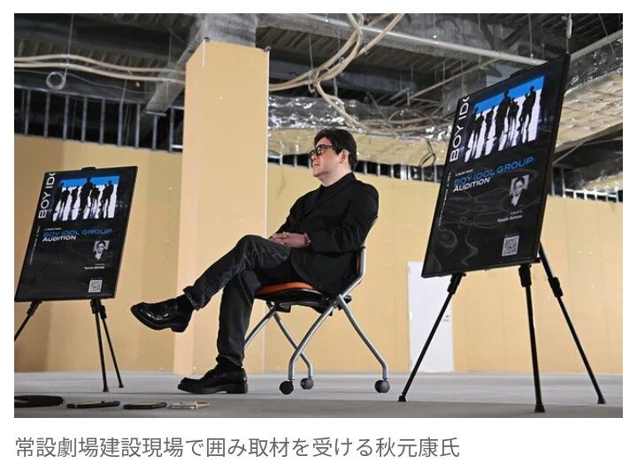 「20年前、秋葉原のAKB48の時も何もなくてブルーシートが貼られている中で視察したことがあった。これからどういう劇場を作っていこうかというのを今ちょうどミーティングしているところですね。やっぱりゼロから作るっていうのは面白い。今、アドレナリンが出ている状態で、あとはお客さんが楽しんでいただけて、集まっていただけるか。面白いと*てきだとか、かっこいいとか、かわいいとか、何かそういうリアクションを待っている気持ち」と明かした。