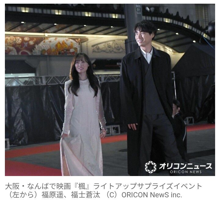 俳優・福士蒼汰、福原遥が23日、大阪・なんばにサプライズ登場。映画『楓』(12月19日公開)となんば広場2周年のライトアップを兼ねたイベントで、もっともにぎわう南海なんば駅、大阪高島屋前の野外に異例の野外レッドカーペットが実現した。