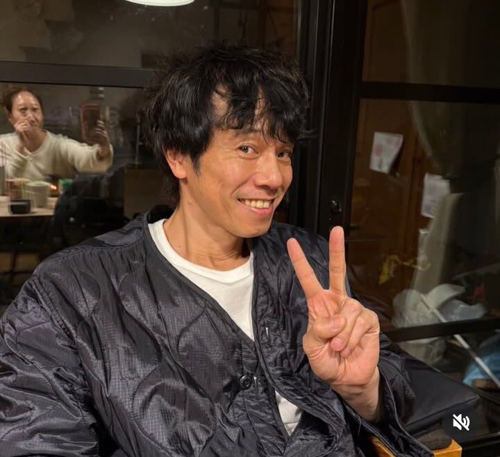 妻・藤本に撮られた自身の写真と、笑顔で携帯画面を見つめる藤本の写真を公開した。