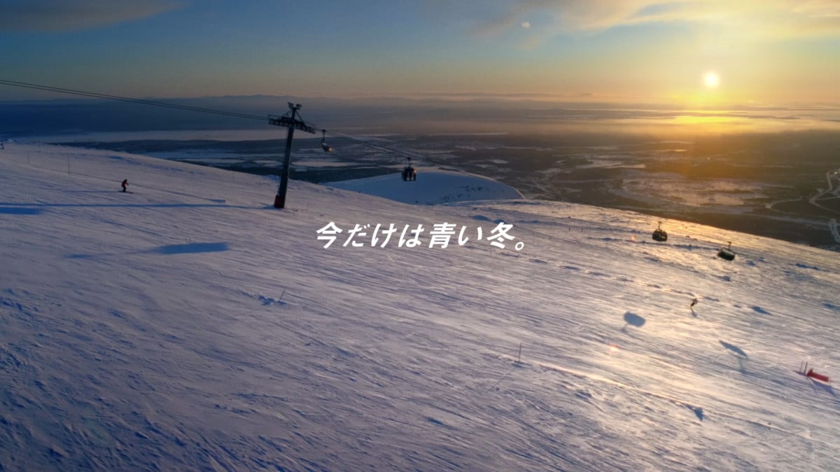 1991年から展開する「JR SKISKI」は、シーズンごとに期待の若手を起用し、冬の旅とスキーの魅力を伝えてきた。今年のキャッチコピーは「今だけは青い冬。」。「やや制限や規律に縛られる高校生まで」と「仕事や責任を背負う社会人」になるまでの間にある大学生時代、そんな時期にしか過ごせない、キラキラとした「青い冬」が「今だけは」あると考え、一生モノの思い出になる冬を体験してほしいという思いを込めている。