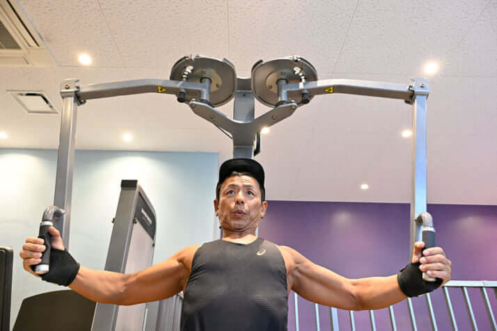 「実は祖母の世話をしながら介護の大変な部分も経験したので、妻や周囲のことを考え、“自分は介護されない人間になろう”と心に決めました。そして体を鍛えようと思い立ち、スポーツジムに通い始めたのが3年前。昨年からベンチプレスにも挑戦し、今ではベンチ最高100キロ、ダンベルは44キロを上げることができるようになりました」